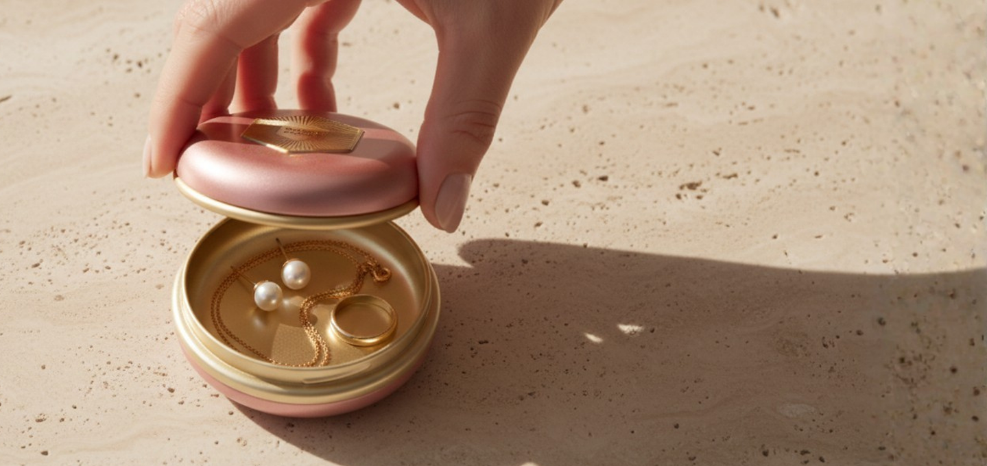 Water-dissolvable, biodegradable capsules are paired with a durable metal container intended for long-term reuse, integrating sustainability into the product system.